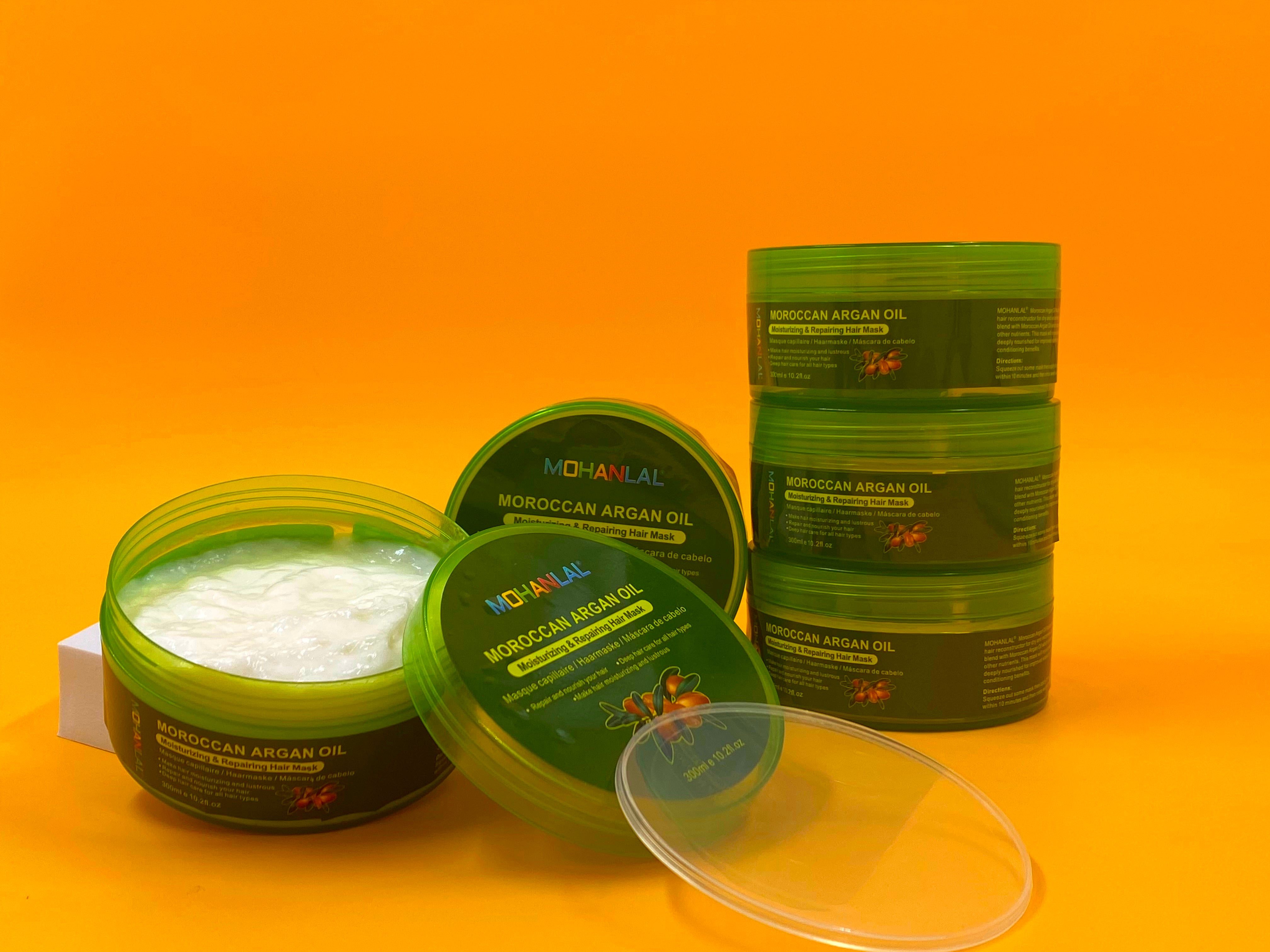 Het MOHANLAL® ARGAN OIL HAARMASKER 300ML is ontwikkeld door Ravi Ryan Mohanlal LLM MSc en is een revitaliserend haarmasker voor droog en extreem beschadigd haar. Het is gemaakt van een unieke, kostbare mix met 100% Marokkaanse arganolie, rijk aan vitamine E, vetzuren, eiwitten, keratine en andere voedingsstoffen. Dit masker verjongt, herstelt en hydrateert je haar, waardoor het diep gevoed wordt en de elasticiteit, gladheid, vochtigheid en glans verbeteren, met langdurige verzorgende voordelen.